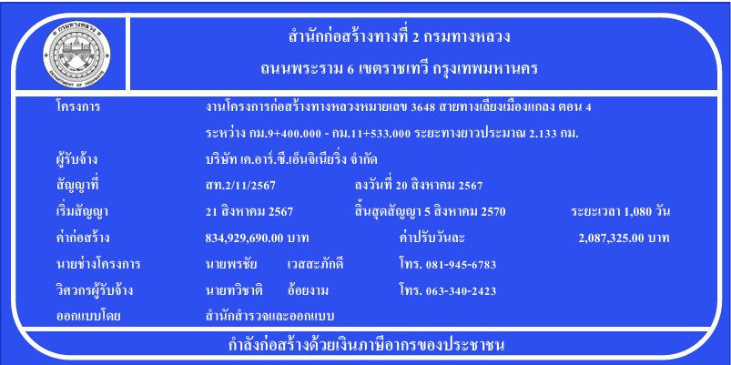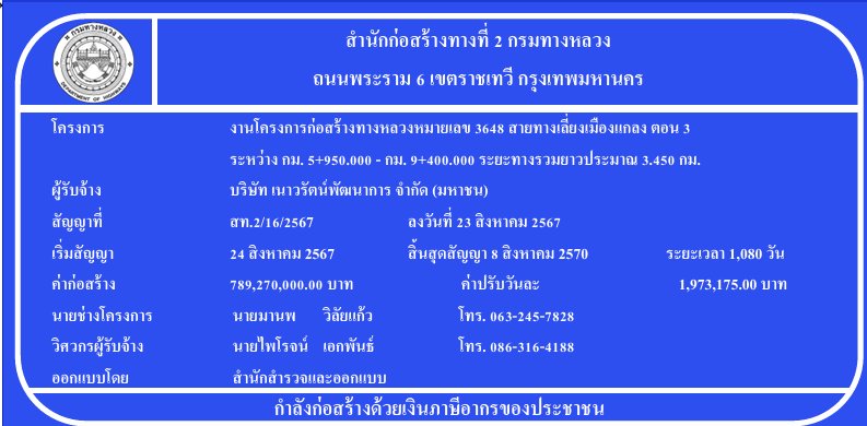 ข้อมูลโครงการ ช่วงก่อสร้าง: ระหว่าง กม.5+950 ถึง กม.9+400 ระยะทางรวม: ประมาณ 3.450 กิโลเมตร มูลค่าโครงการ: 789,270,000 บาท รูปแบบถนน:…