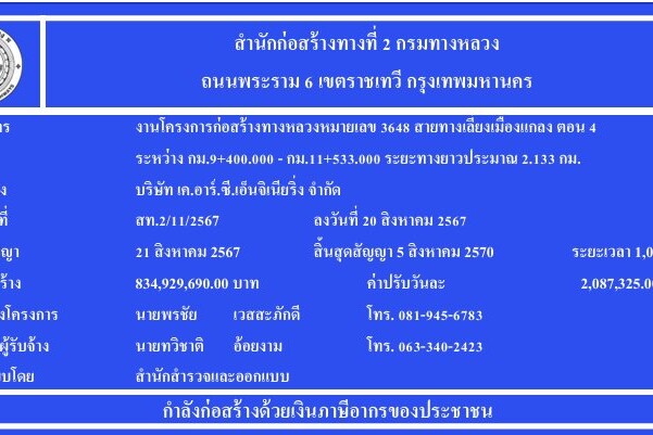 โครงการรับเหมาก่อสร้างทางหลวงหมายเลข 3648 สายทางเลี่ยงเมืองแกลง (ตอนที่ 3)